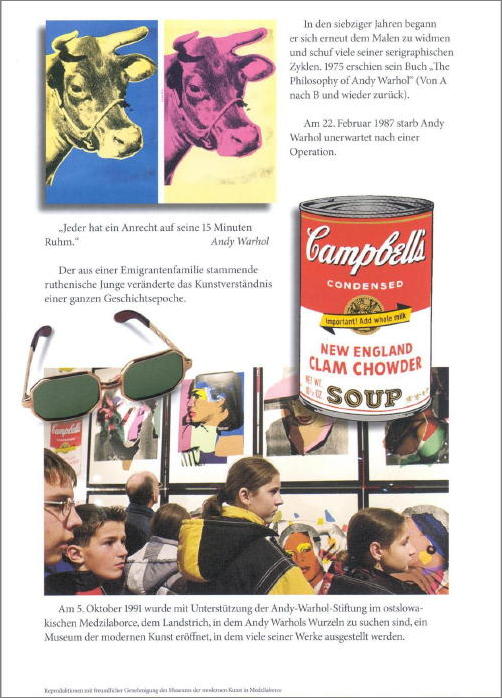 Andy Warhol (Andrej Varchola) war der jüngste von drei Söhnen einer armen Bauernfamilie mit russinischen Wurzeln. Seine Eltern Ondrej Varchola (amerikanisiert zu Warhola) (1888 -1942) und Julia Justyna, geborene Závacká (1892 -1972) waren Immigranten aus dem Dorf Miková bei Medzilaborce im Nordosten der Slowakei.